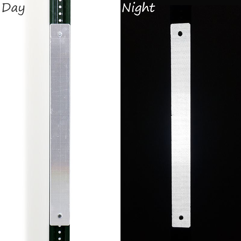 Silver and white panel is extremely reflective and is visible 24 hours a day.