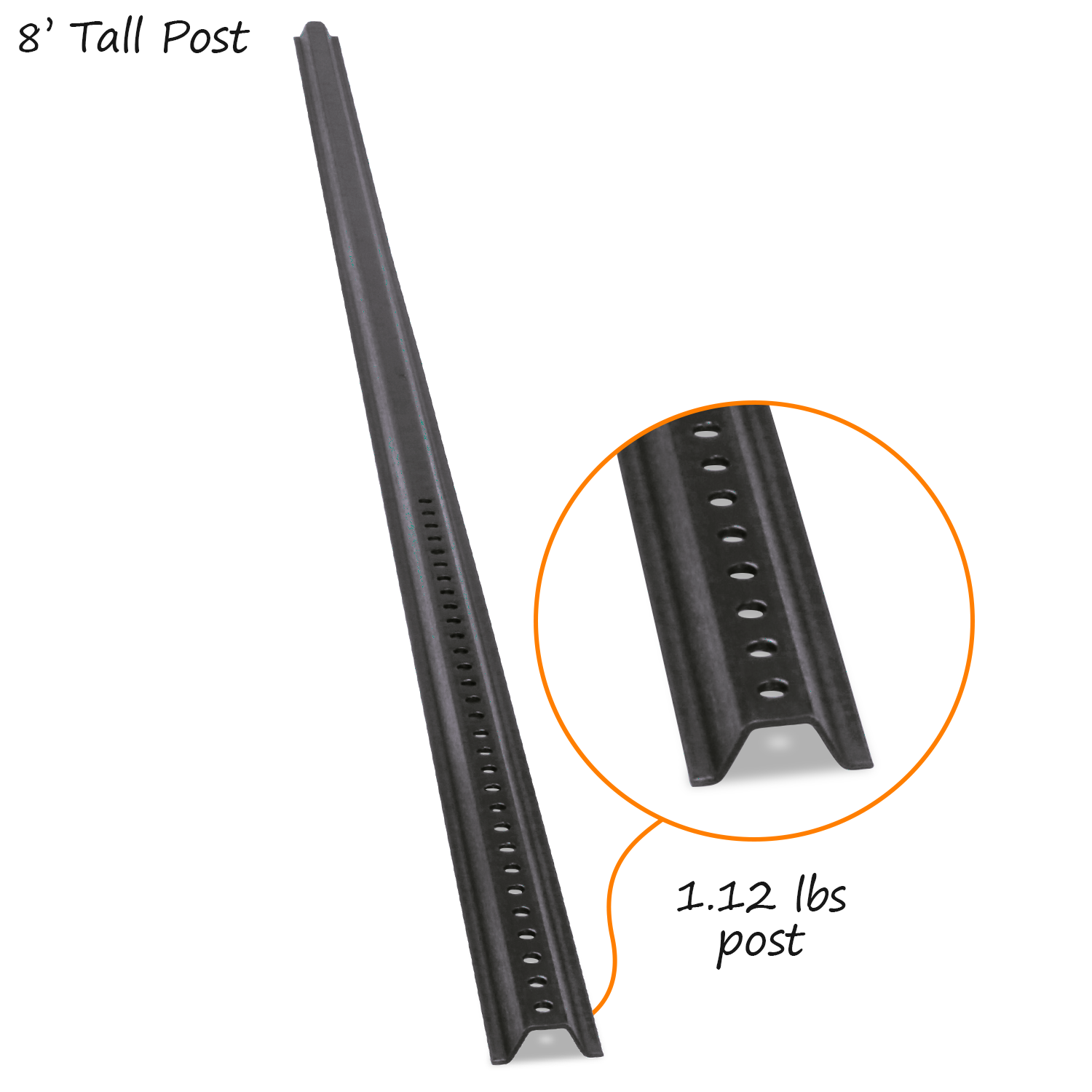 8' tall black posts are made of medium weight steel with a baked-on black coating that protects the post from rusting.