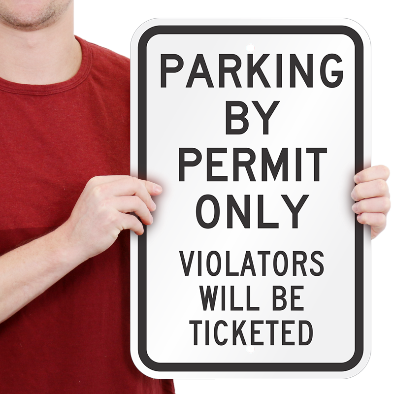 No Parking Without Permit Sign: Parking By Permit Only, Violators Will Be Ticketed K-2343 Learn More...