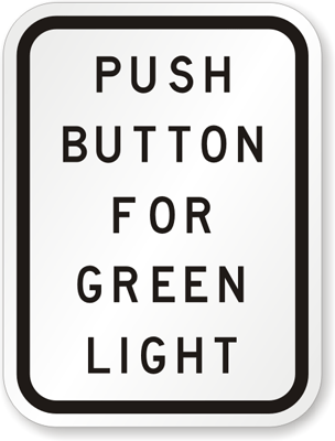 MUTCD Compliant Traffic Signal Sign: Push Button For Green Light X-R10-3 Learn More...