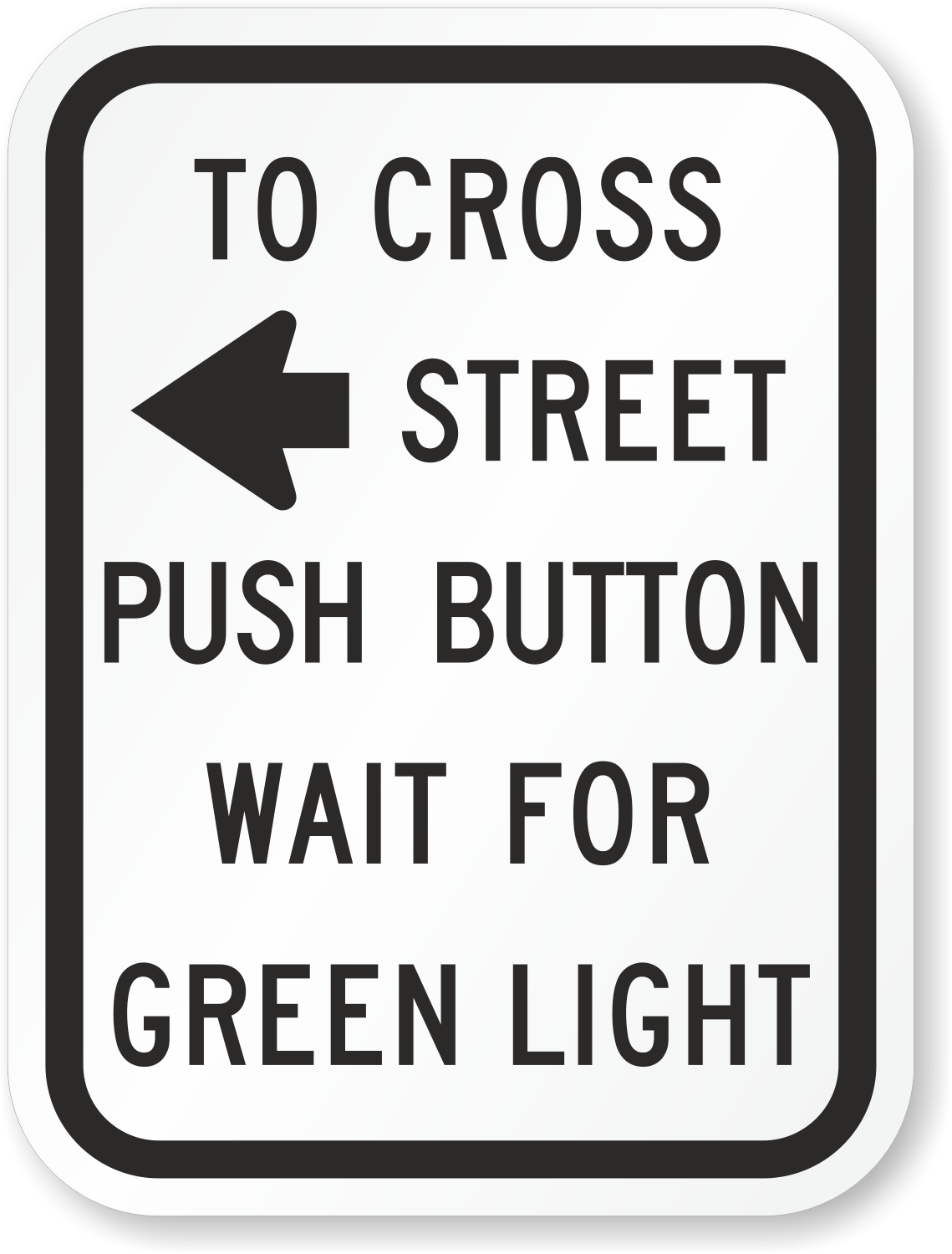 MUTCD Compliant Street Crossing Instructions Sign: To Cross Street Push Button Wait for Green Light (Choose Arrow) X-R10-3AL Learn More...