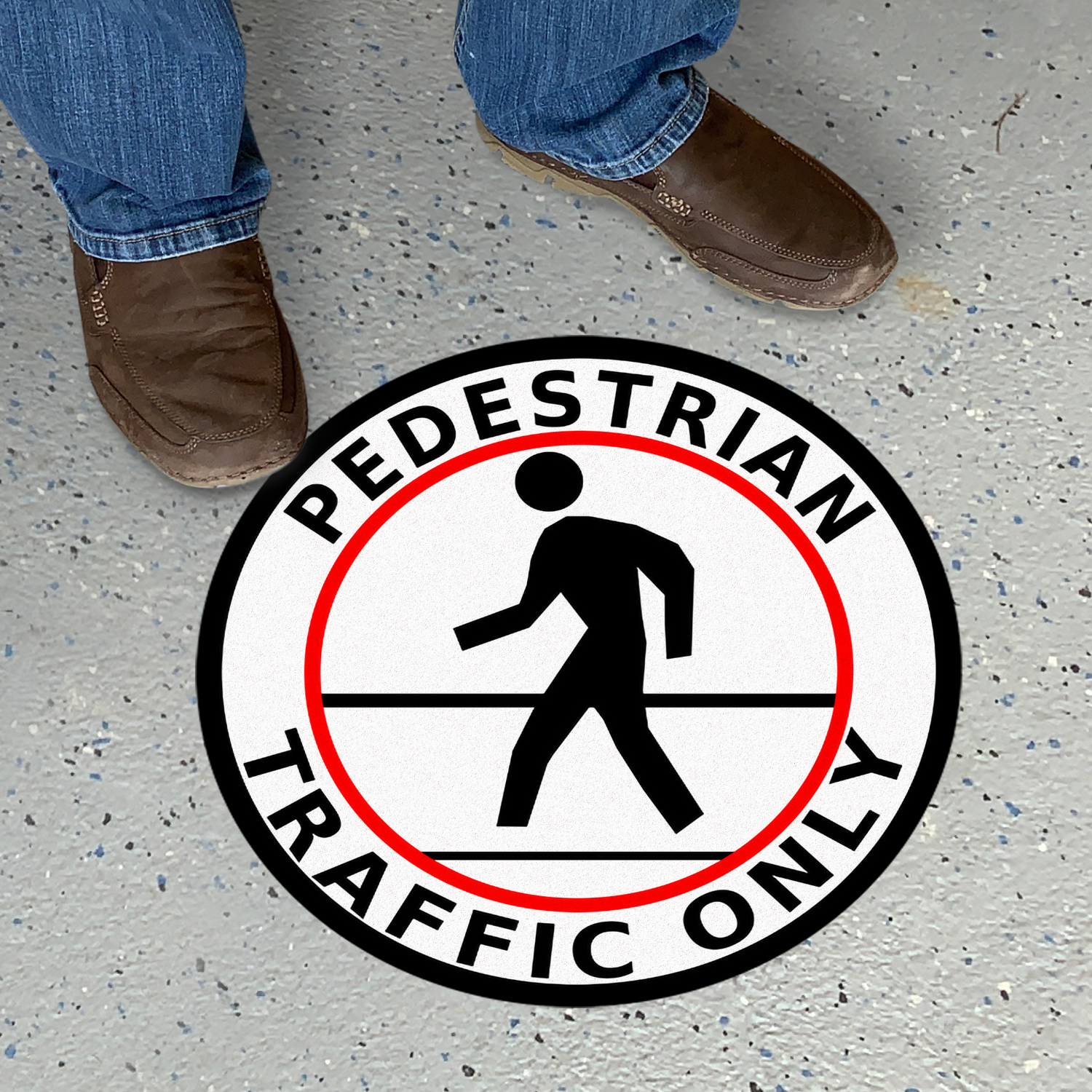 Direct pedestrian traffic with this peel-and-stick floor sign.