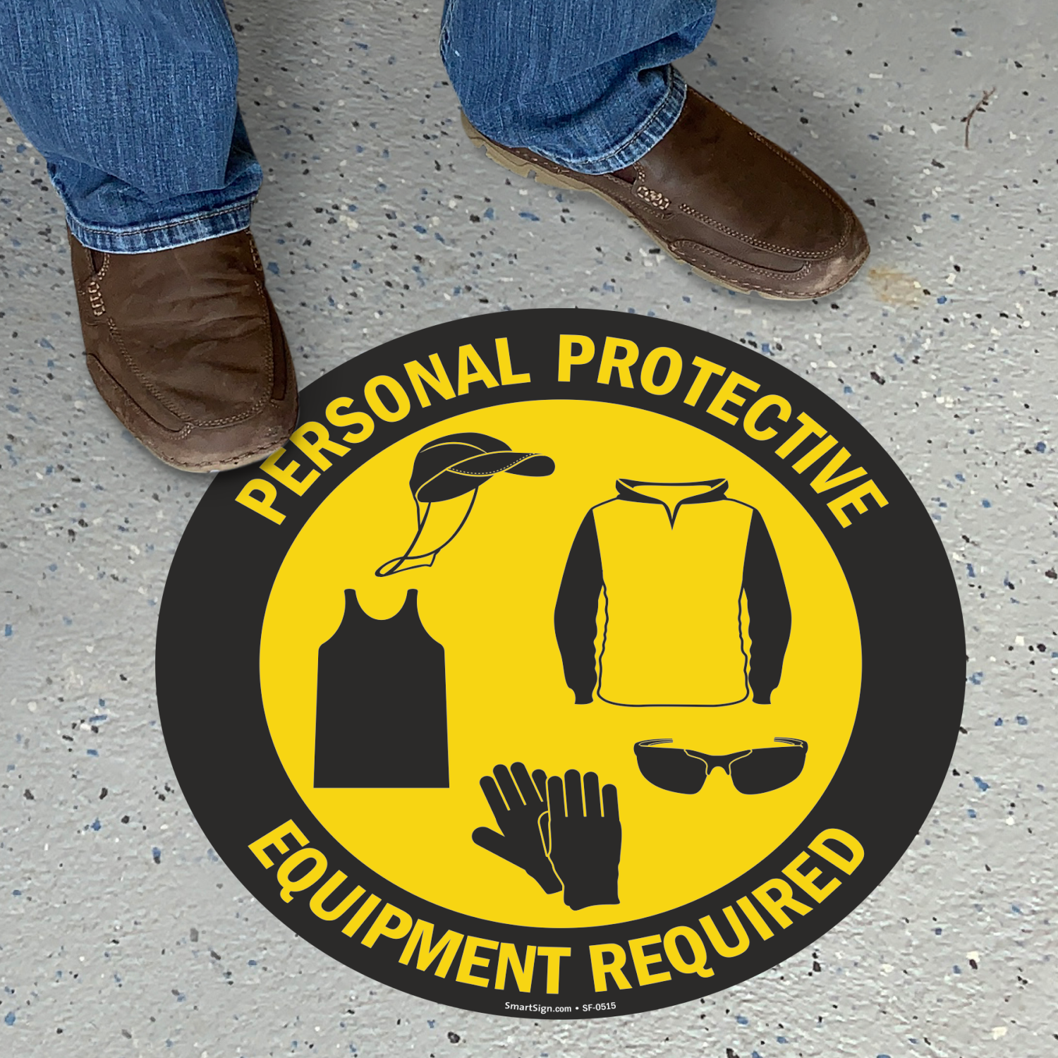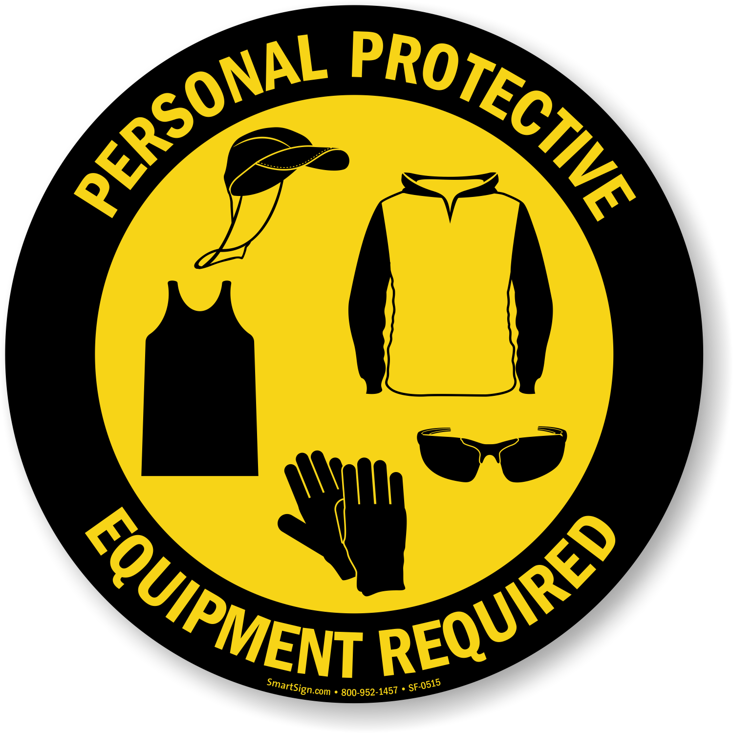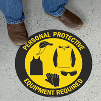 SlipSafeâ„¢ Circular Floor Sign with graphics of all required PPE is the best way to communicate your message across.