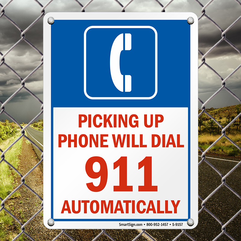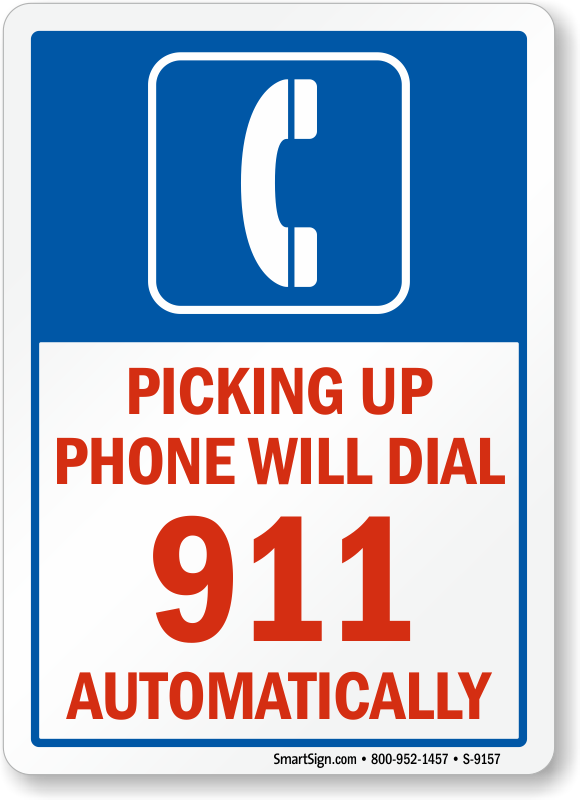 Emergency Phone Sign: Picking Up Phone Will Dial 911 Automatically (With Graphic) S-9157