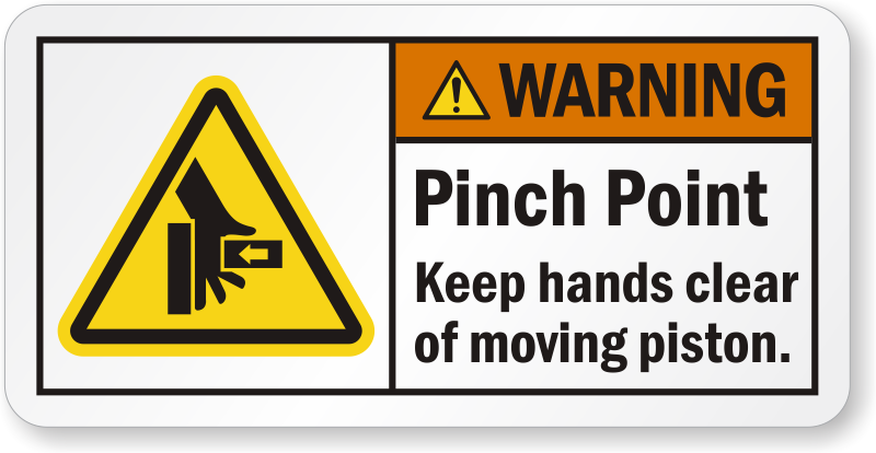 Apply this horizontal ANSI label with graphic to inform workers that keeping hands around a moving piston can cause injury.