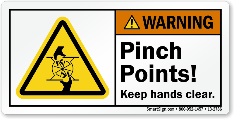 ANSI Warning Safety Label: Pinch Points! Keep Hands Clear (With Cutting of Fingers Rotating Blades Symbol) LB-2786
