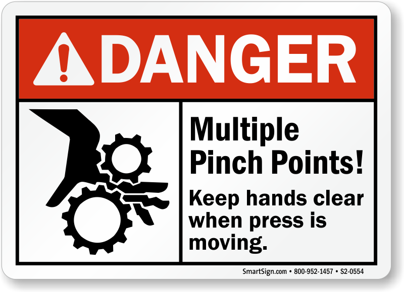 ANSI Danger Sign: Multiple Pinch Points! Keep Hands Clear When Press is Moving (with Symbol) S2-0554