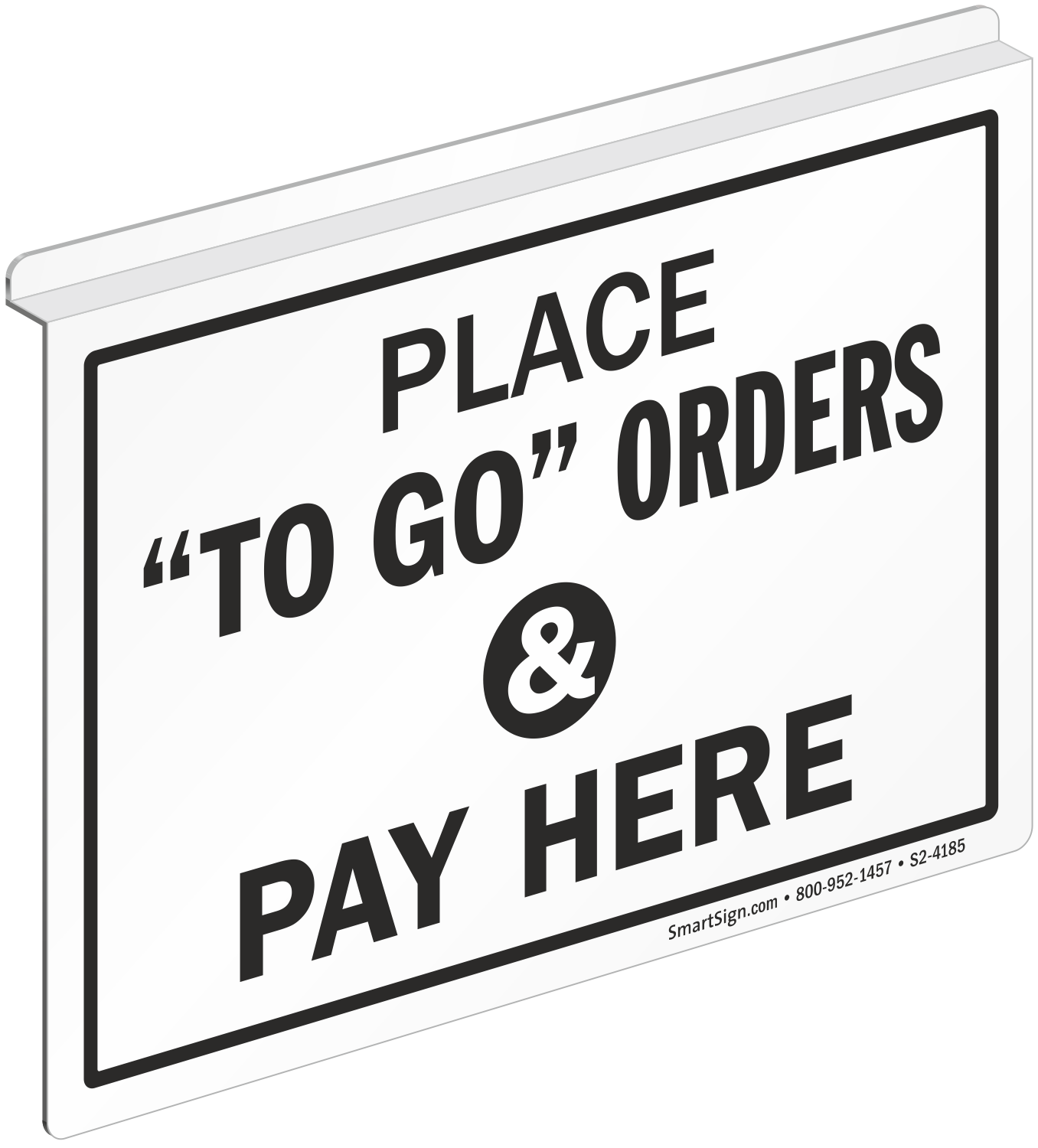 Clear confusion at the cashier's desk with this 'Place "To Go" Orders & Pay Here' sign hanging from the ceiling.