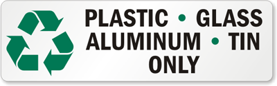 Placing separate containers for different waste products in your facility is not enough; labeling each container is equally important. Use a 'Plastic - Glass - Aluminum - Tin Only' Recycle Label. A Recycle Label is an effective tool in your waste management program.