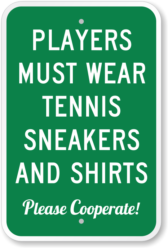 Tennis Court Rules Sign: Player Must Wear Tennis Sneakers And Shirts Please Cooperate! K-0345