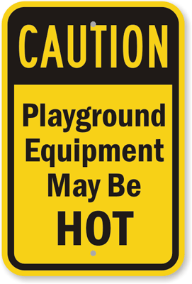 Sure, it's no steaming cup of McDonald's coffee, but that jungle gym can still be seriously dangerous! On a blazing summer day, hot metal equipment poses a harzard to children that is too often overlooked. Ensure playground visitors are aware of the danger with this hard-to-miss, bestselling sign.