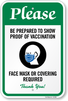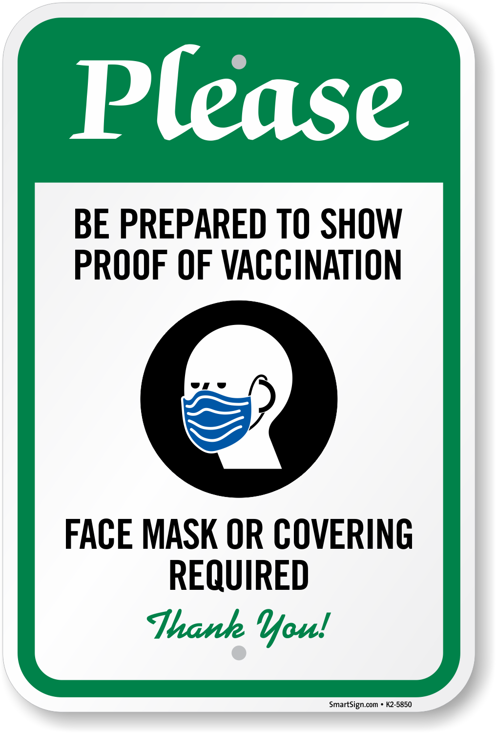 Vaccine Site Sign: Please - Be Prepared To Show Proof Of Vaccination, Face Mask Or Covering Required, Thank You! K2-5850 Learn More...