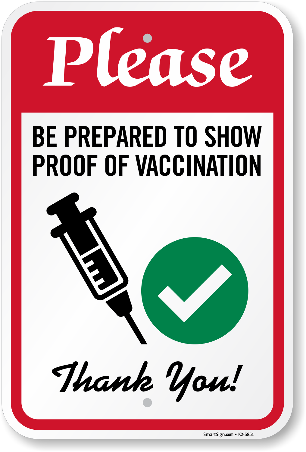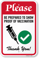 Vaccine Site Sign: Please - Be Prepared To Show Proof Of Vaccination, Thank You! K2-5851 Learn More...