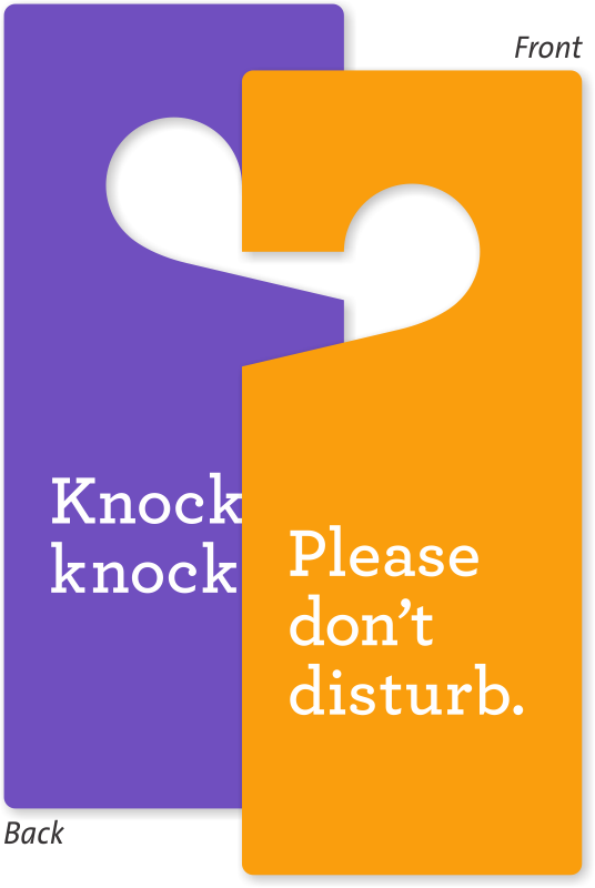 Great signs at a great price. The design is perfect and the quality is high. My only suggestion is to put a full circle to hang on the doorknob as they fall off when you open and close the door with the half-open top.