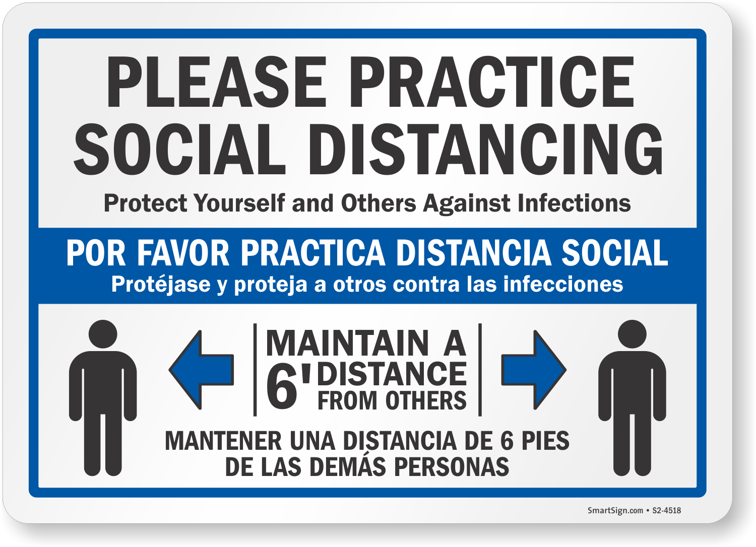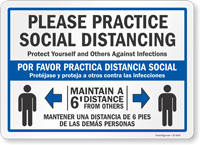 Bilingual signs target Spanish and English-speaking audience and make your social distancing message reach broadly.