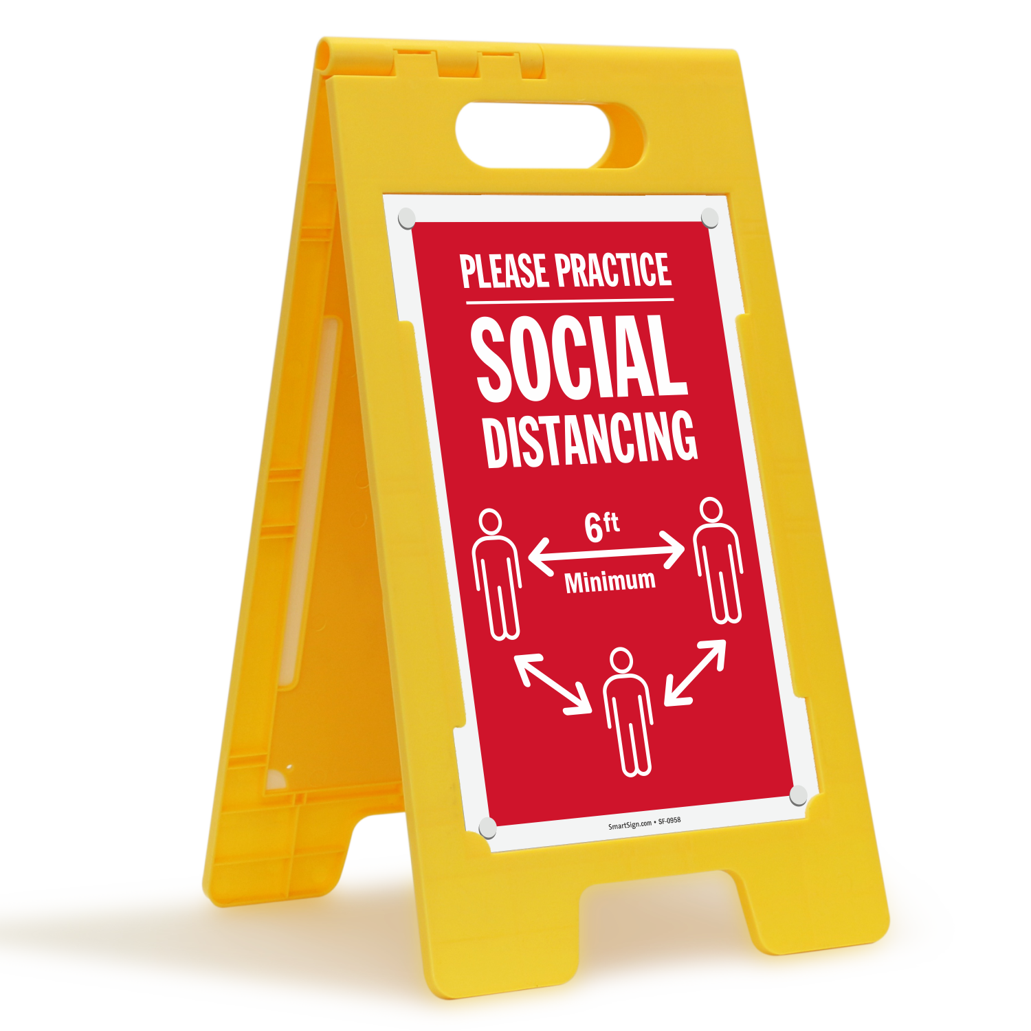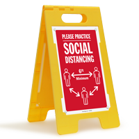 FloorBoss sign is two-sided and hard to ignore. It promises the best visibility for your 'please practice social distancing' request.