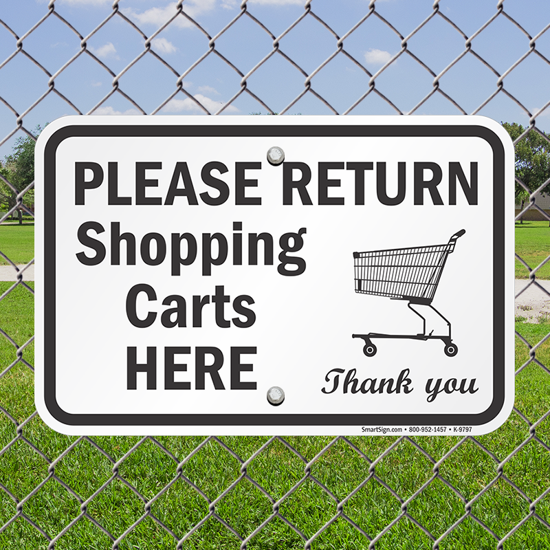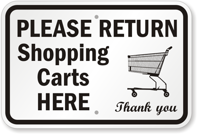 Shopping Carts Sign: Please Return Shopping Carts Here Thank You with Graphic Learn More...