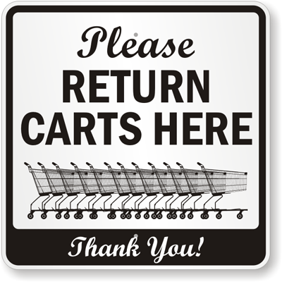 Tell shoppers where they are supposed to return shopping carts. Sign helps keep parking areas clear.