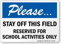 Baseball Sign: Please - Stay Off This Field Reserved For School Activities Only S2-1828