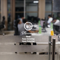 Place this face covering required die cut deal at your entrance for your visitors to see.