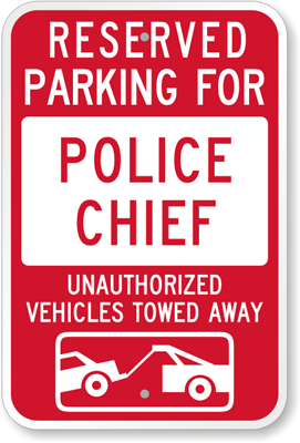 Tow Away Sign: Reserved Parking For Police Chief : Unauthorized Vehicles Towed Away K-5128 Learn More...