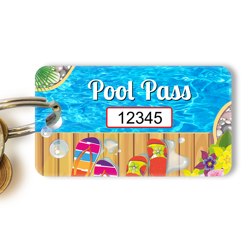 Pool Pass Tag with consecutive numbering ensures no outsider is using your pool. Users can tag this plastic pass along with their keys and never lose them!