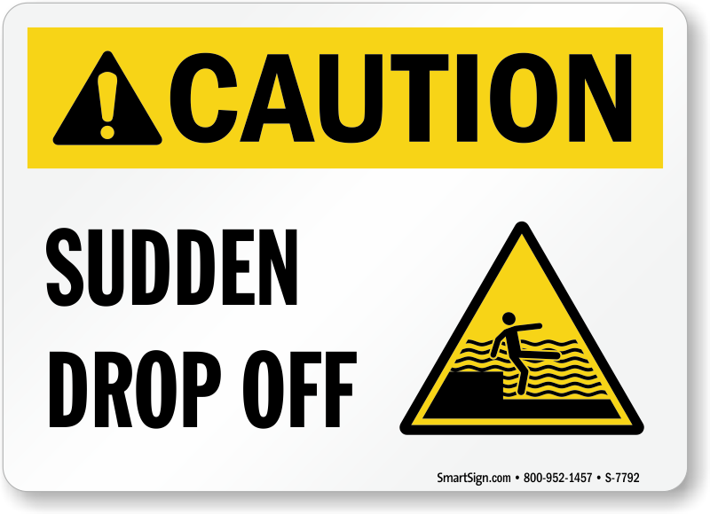 Water Depth Can Change Caution Sign: Sudden Drop Off With Graphic S-7792