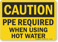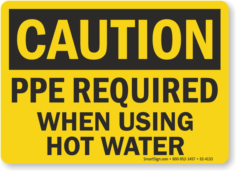 Working with hot water (in cleaning, sanitizing, processing, oil extraction, etc.) can be dangerous for skin and eyes. A sign will always remind workers to use proper PPE.