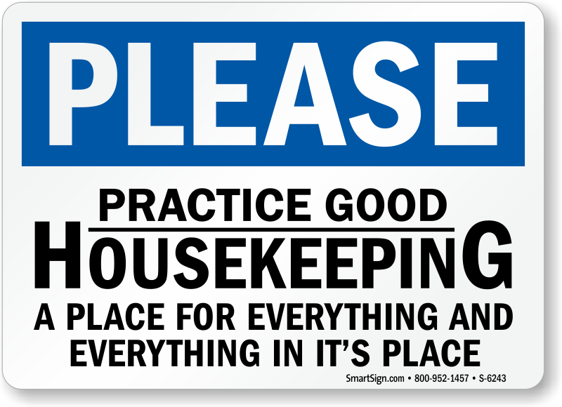 Housekeeping Sign: Please Practice Good Housekeeping - A Place For Everything And Everything In It's Place