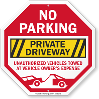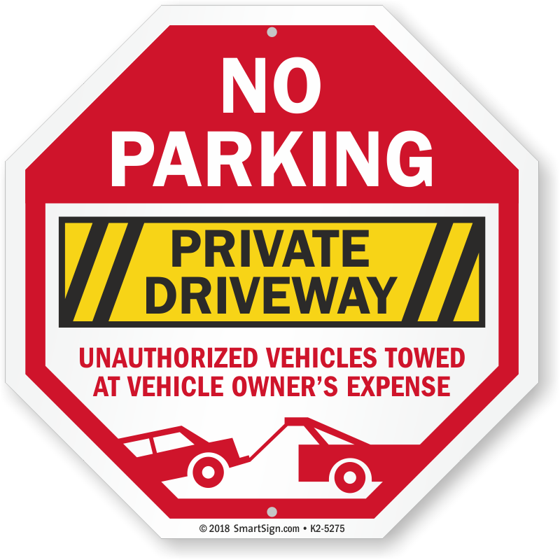 No Parking Sign: Private Driveway - Unauthorized Vehicles Towed At Vehicle Owner's Expense K2-5275