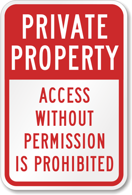 Private Property Sign: Access Without Permission Is Prohibited K-4188 Learn More...