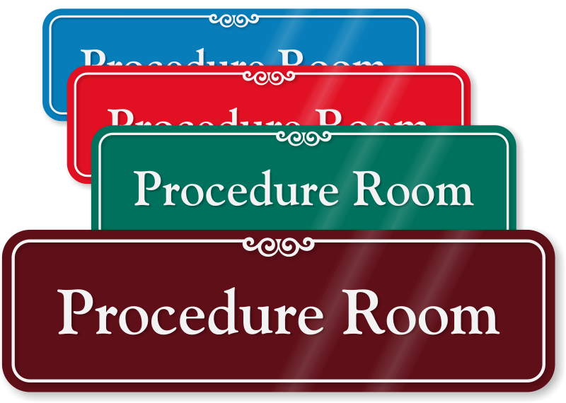 Inform everyone of the procedure room's location by installing this Medical Office ShowCase Wall sign. Your message is encased in a designer border and you can choose the product in a range of elegant color options.