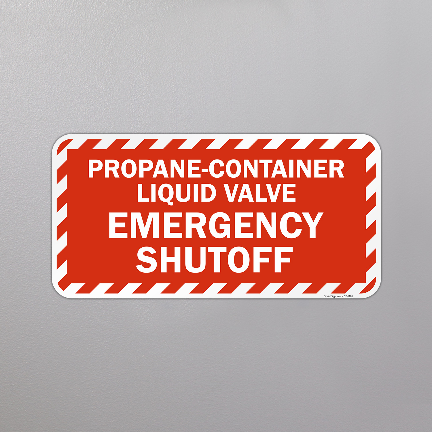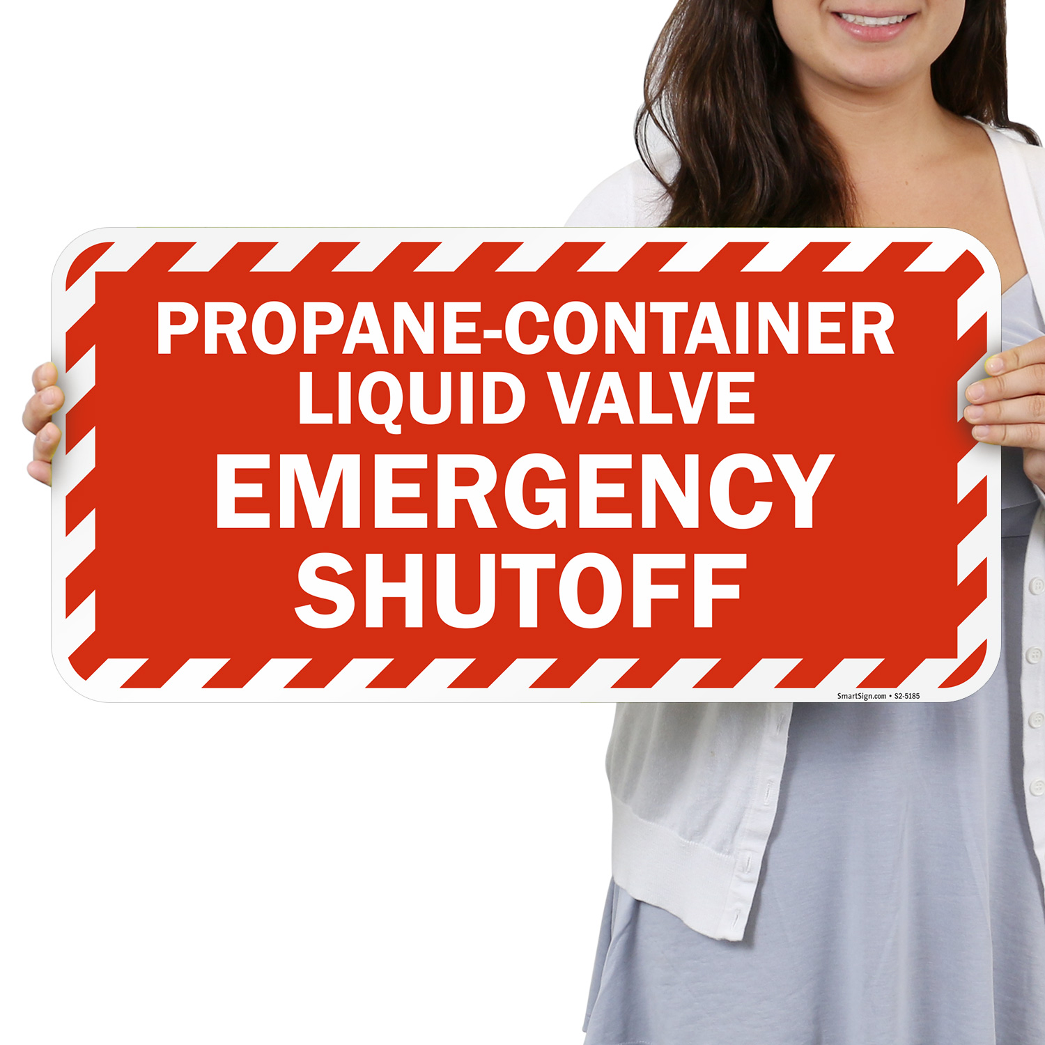 Emergency Shut-Off sign minimizes damage, reduces risks, and prevents accidents by allowing quick identification and location of shut-off controls in emergency situations.