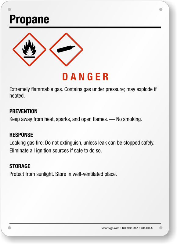 Communicate the risks of hazardous Propane in a workplace with our Propane GHS Sign.
