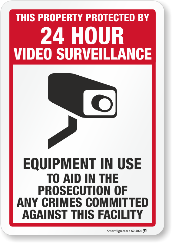 Video Surveillance Sign: This Property Protected By 24 Hour Video Surveillance, Equipment In Use, To Aid In The Prosecution Of Any Crimes Committed Against This Facility S2-4020