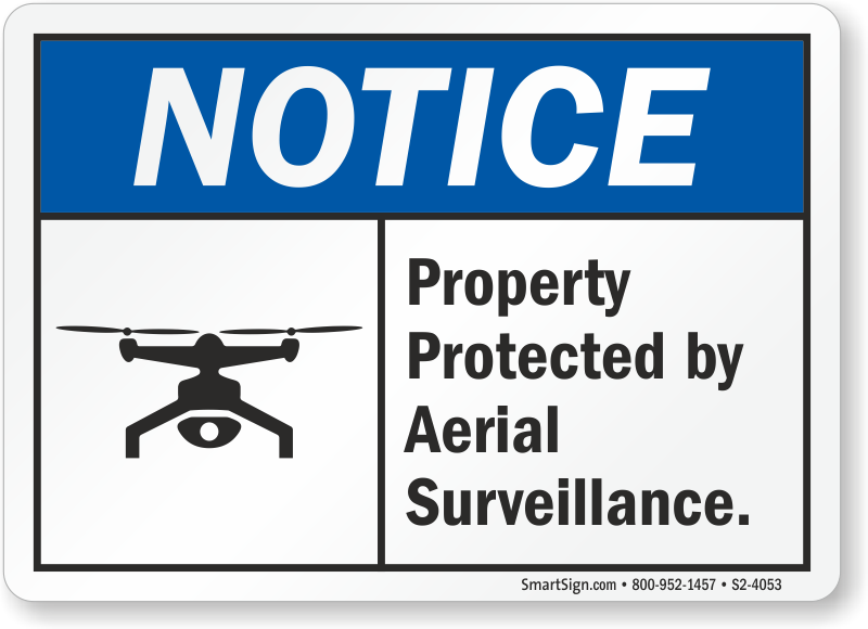 ANSI Notice Drone Liability Sign: Property Protected By Aerial Surveillance S2-4053