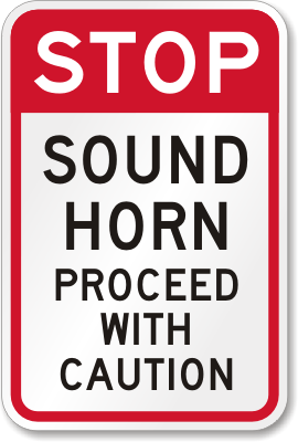 Use a "stop sound horn before proceeding with caution" sign. A sign is there, even when you aren't.