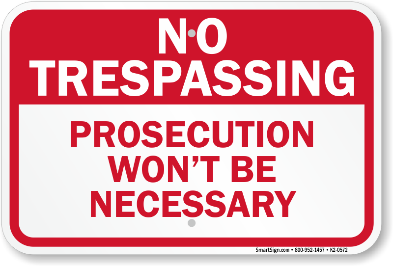 Funny No Trespassing Sign: Prosecution would Not be Necessary K2-0572 Learn More...
