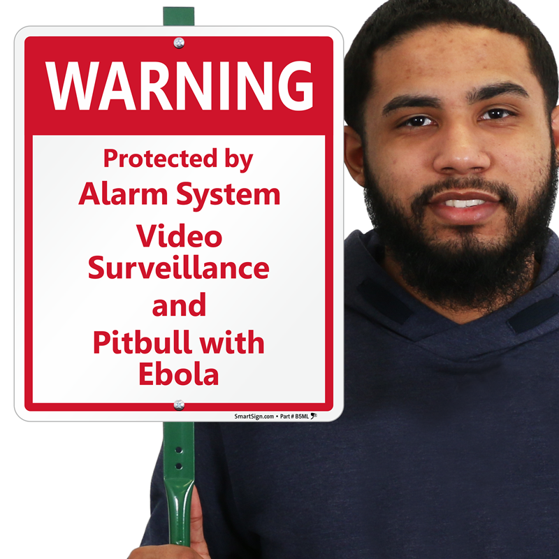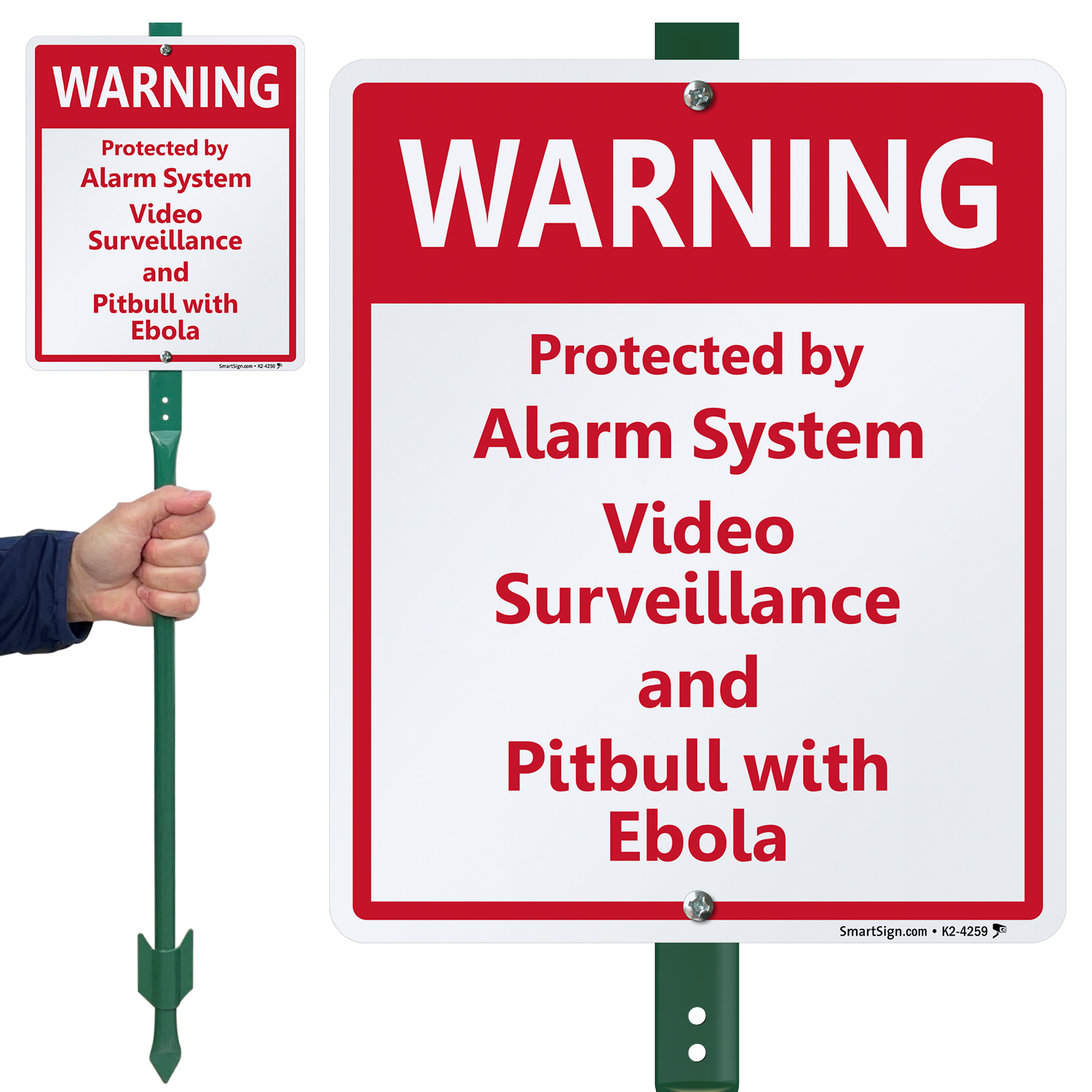 Funny Private Property LawnBoss® Sign & Stake Kit: Protected By Alarm System, Video Surveillance And Pitbull With Ebola K2-4259