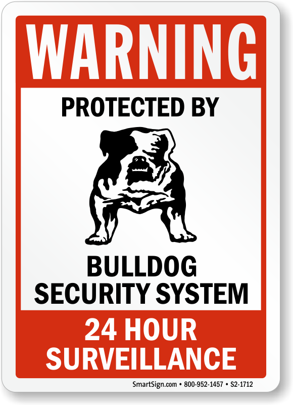 Home Security Sign: Warning - Protected By Bulldog Security System 24 Hour Surveillance S2-1712