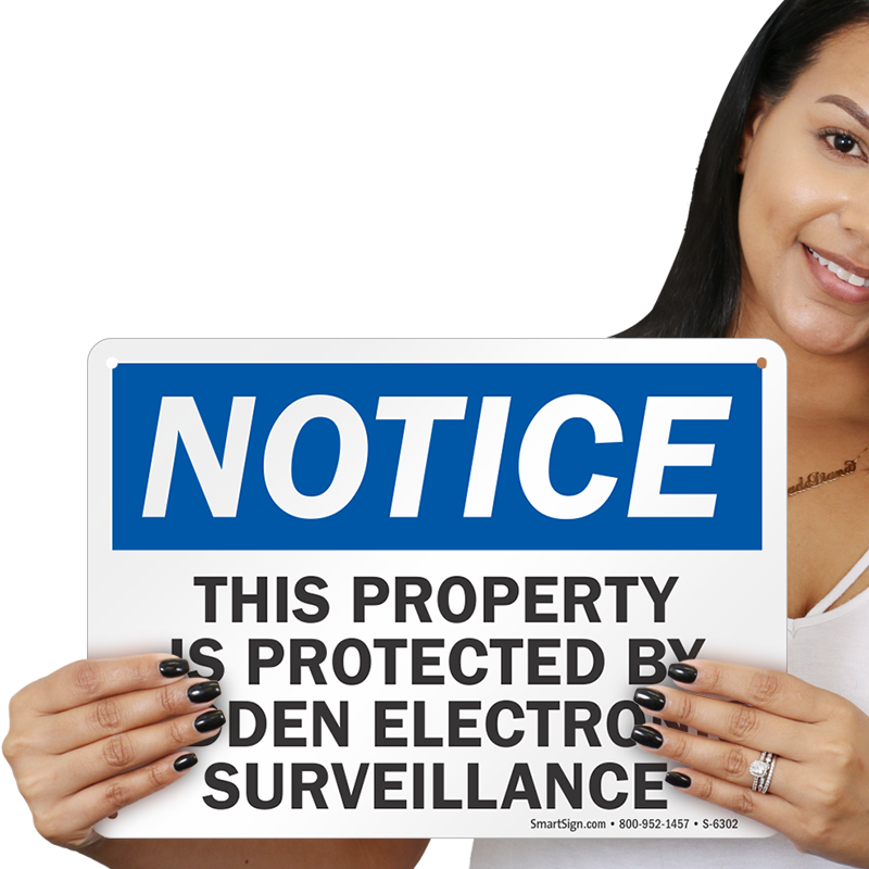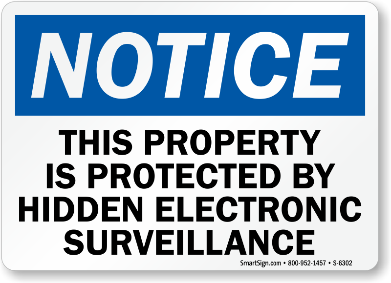 If your property is protected by hidden electronic surveillance, install this OSHA Notice Sign to warn visitors that their every move is being watched.