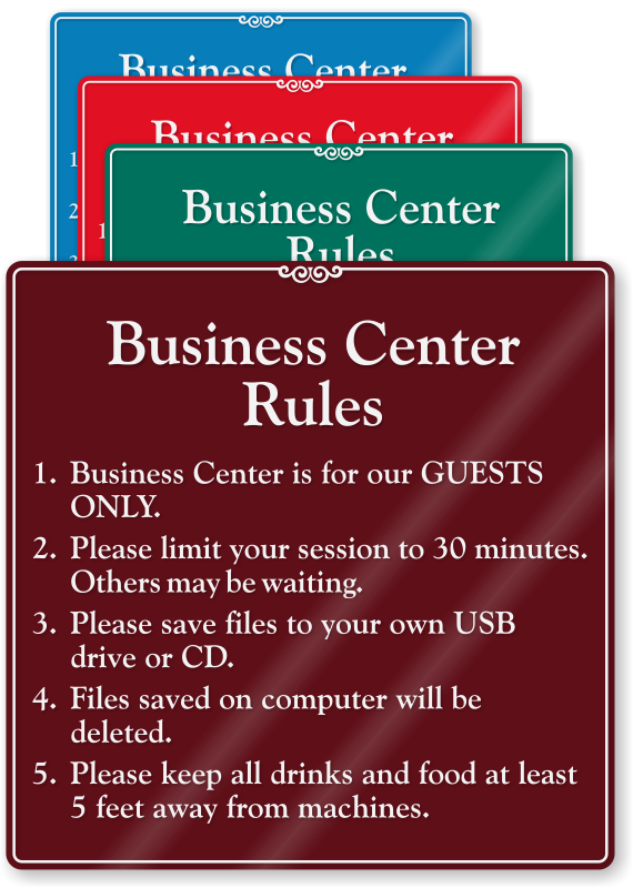 Post your business center rules clearly with this elegant wall sign.
