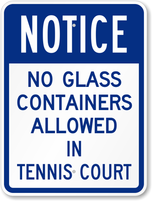 Tennis Court Rules Sign: Notice No Glass Containers Allowed In Tennis Court K-6677 Learn More...