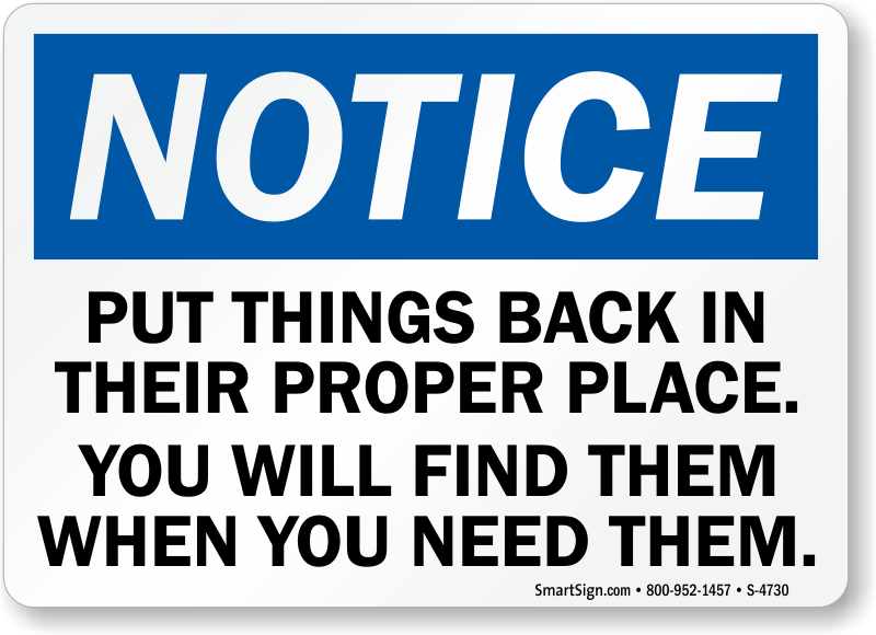 This OSHA Notice sign will help keep your facility organized and tidy. Post this message and remind everyone to put things at their proper place to easily locate them in future.