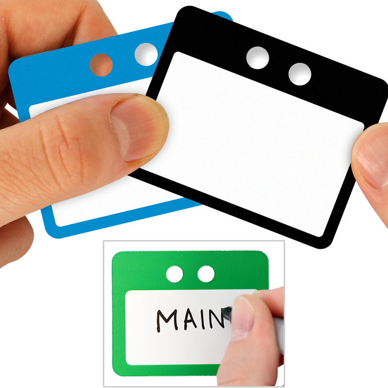 - 14 mil thick tags in 6 colors — white, black, yellow, red, blue, and green. Great for color-coding. Use a permanent marker to write over the blank surface.