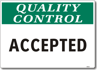 Quality Control Sign: Quality Control: Accepted QC-1302