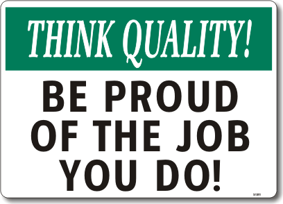 Quality Control Sign: Think Quality: Be Proud of the Job You Do! QC-1311