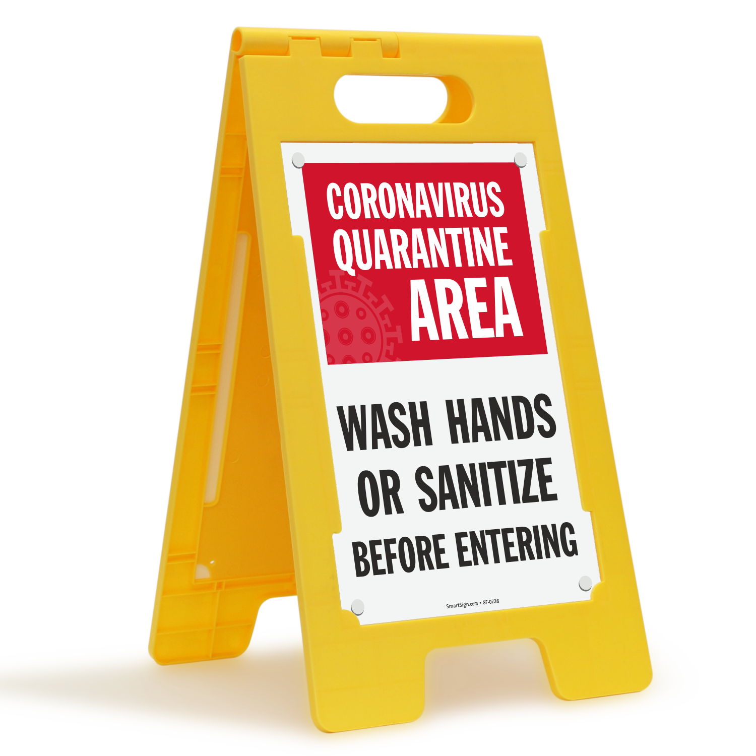 FloorBoss Standing Floor Sign: Quarantine Area: Wash Hands Or Sanitize Before Entering