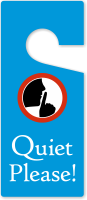 Need some silence while working/studying or doing any other important work? Use this door hanging tag and ask people to keep quiet. A finger on the lips graphic speaks for itself. Claw-shaped cutout fits over any standard door knob.