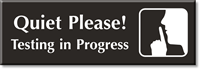 Select-a-Colorâ„¢ Engraved Sign: Quiet Please! Testing In Progress With Finger On Lips Graphic SE-5736 Learn More...